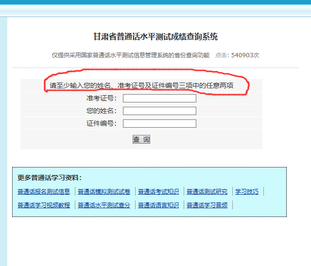 请仔细看:请至少输入您的姓名、准考证号及证件编号三项中的任意两项