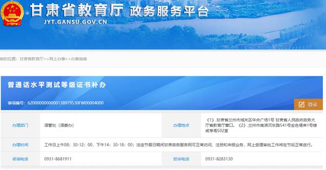 点击网址:https://jyt.gansu.gov.cn/online_apply/bszn.xhtml?source_id=180531172712173001872进入甘肃省教育厅政务服务平台普通话水平测试等级证书补办页面: